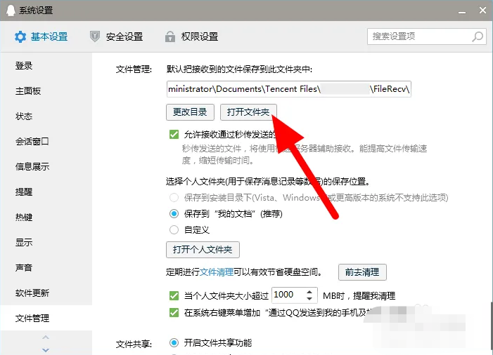 2、點(diǎn)擊文件管理,點(diǎn)擊打開(kāi)文件夾;