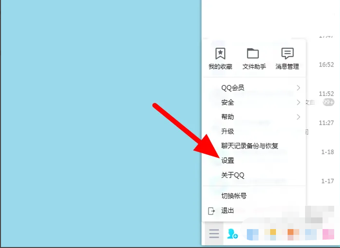 1、在QQ的菜單界面選項(xiàng)下,點(diǎn)擊【設(shè)置】進(jìn)入其中。