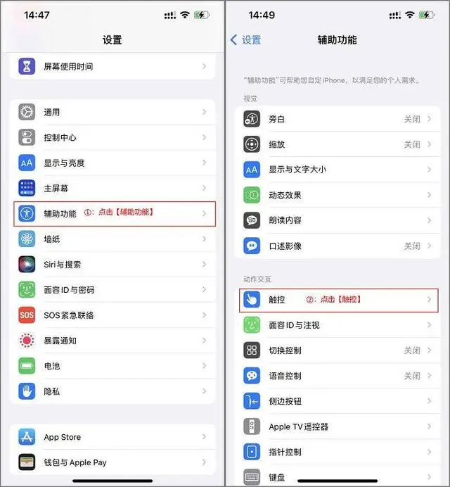 方法/步驟:方法:點(diǎn)擊輔助功能中的觸控按鈕1、蘋果怎么截屏,首先點(diǎn)擊設(shè)置的輔助功能,點(diǎn)擊觸控。