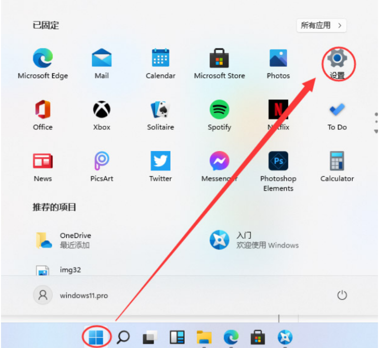 1、首先我們點(diǎn)擊打開(kāi)win11系統(tǒng)桌面,點(diǎn)擊“設(shè)置”選項(xiàng)。