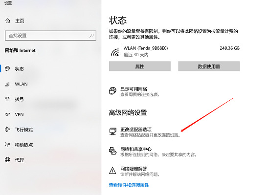 2.點(diǎn)擊“更改適配器選項(xiàng)”;