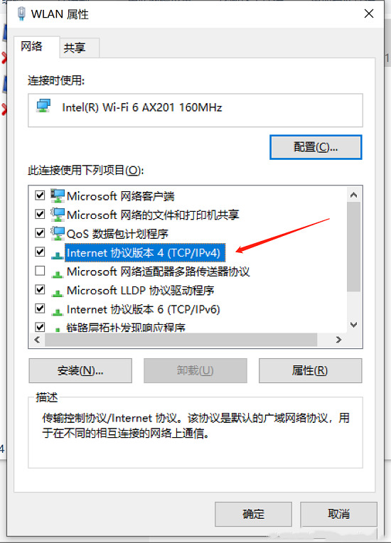 4.點(diǎn)擊版本4,選擇屬性,進(jìn)行配置; (需要勾選“自動(dòng)獲取IP地址”,然后在下圖中填寫首選和備用dns服務(wù)器)。