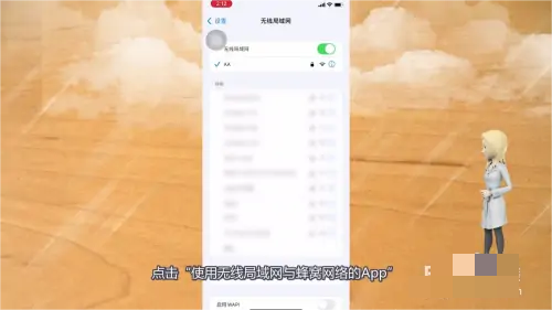 2.進入使用無線網(wǎng)絡的app,在無線局域網(wǎng)界面,點擊“使用無線局域網(wǎng)和蜂窩網(wǎng)絡的應用程序”。