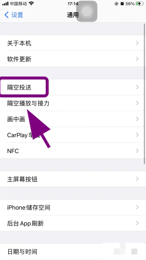3、進(jìn)入通用設(shè)置菜單,點(diǎn)擊【AirDrop】選項(xiàng);