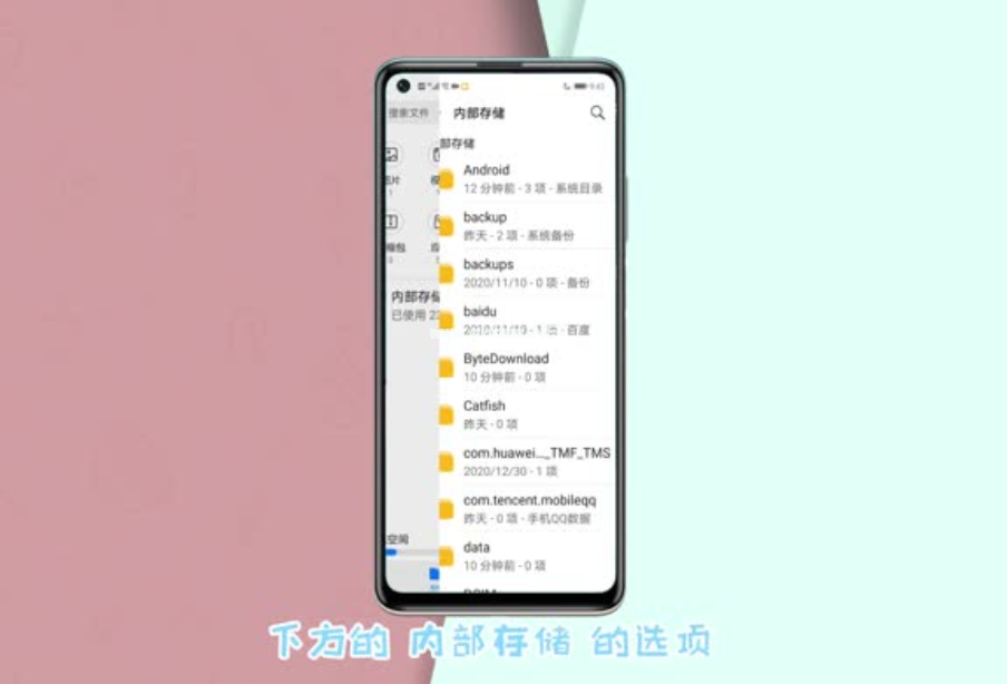 2.在文件管理中,我們點擊下方的“內(nèi)部存儲”的選項。