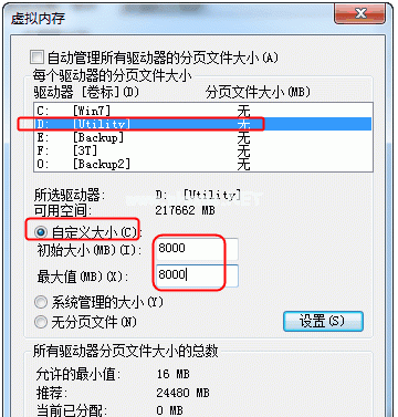 3、選擇虛擬內(nèi)存所在的驅(qū)動(dòng)器。建議選擇c驅(qū)動(dòng)器以外的驅(qū)動(dòng)器,然后單擊自定義大小以開(kāi)始設(shè) 置。