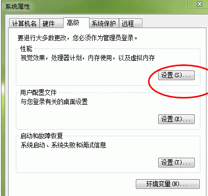 1、右鍵單擊計(jì)算機(jī),然后單擊“打 開(kāi)屬性”。 在“屬性”窗口中選擇“高級(jí)”選項(xiàng)卡,然后單擊“性能”下的“設(shè)置”按鈕。