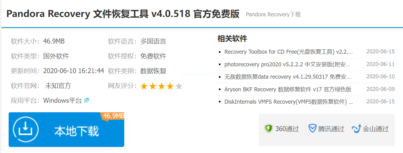 PandoraRecovery這是一款完全免費的文件恢復軟件,能夠對刪除的文件進行恢復。它支持NTFS、NTFS5和NTFS/EFS等等文件格式,兼容本地和網絡磁盤還有USB閃存盤等等。