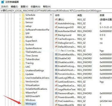 5、我們在注冊表編輯器窗口界面中找到計(jì)算機(jī)->HKEY_LOCAL_MACHINE->SOFTWARE->Microsoft->Windows NT->CurrentVersion->Winlogon。
