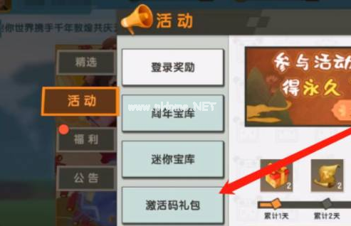 進(jìn)入激活碼禮包輸入迷你世界激活碼: