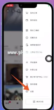 3、在打開的隱藏菜單欄中 ,選擇下方的【設置】并點擊。