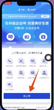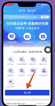 7、把企業(yè)認證頁面打開后,點擊頁面 下方位置的【去上傳】。