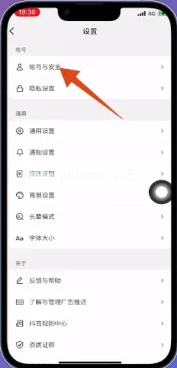 4、把設置頁面打開之后,點擊頁 面上方的【帳號與安全】。
