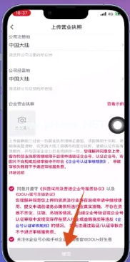 7、在資料上傳頁面中,按照提示【上傳營業(yè)執(zhí)照】,勾選同意服務協(xié)議,點擊下方位置的【提交】 按鈕,按步驟進行申請抖音藍v即可。