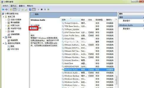 方法二:通過進(jìn)入計(jì)算機(jī)管理的服務(wù)頁面重啟audio的方法