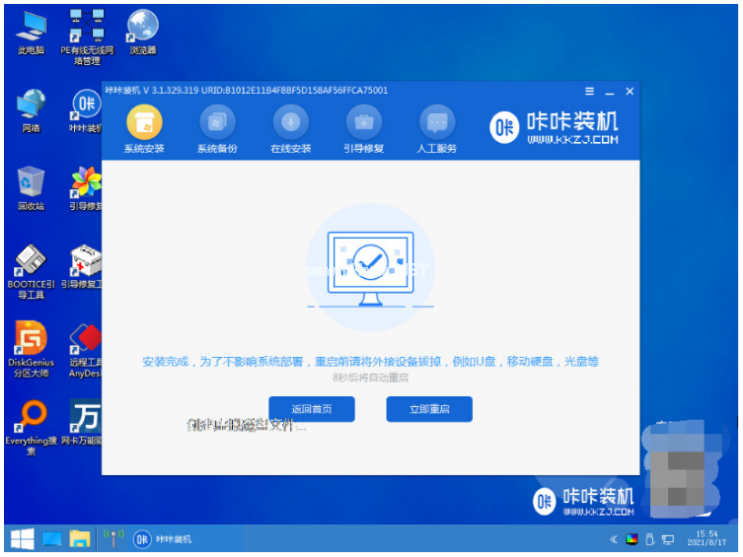 8、耐心等待裝機(jī),完成之后將U盤拔出,再點(diǎn)擊立即重啟。