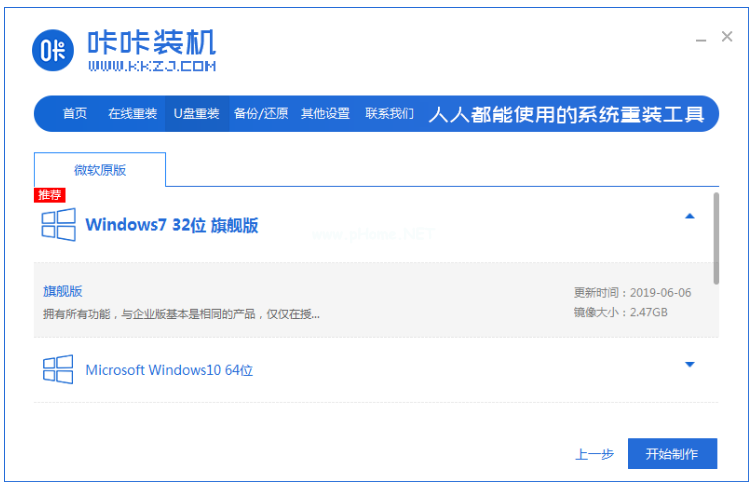 3、選擇我們需要安裝的系統(tǒng),點(diǎn)擊開始制作。