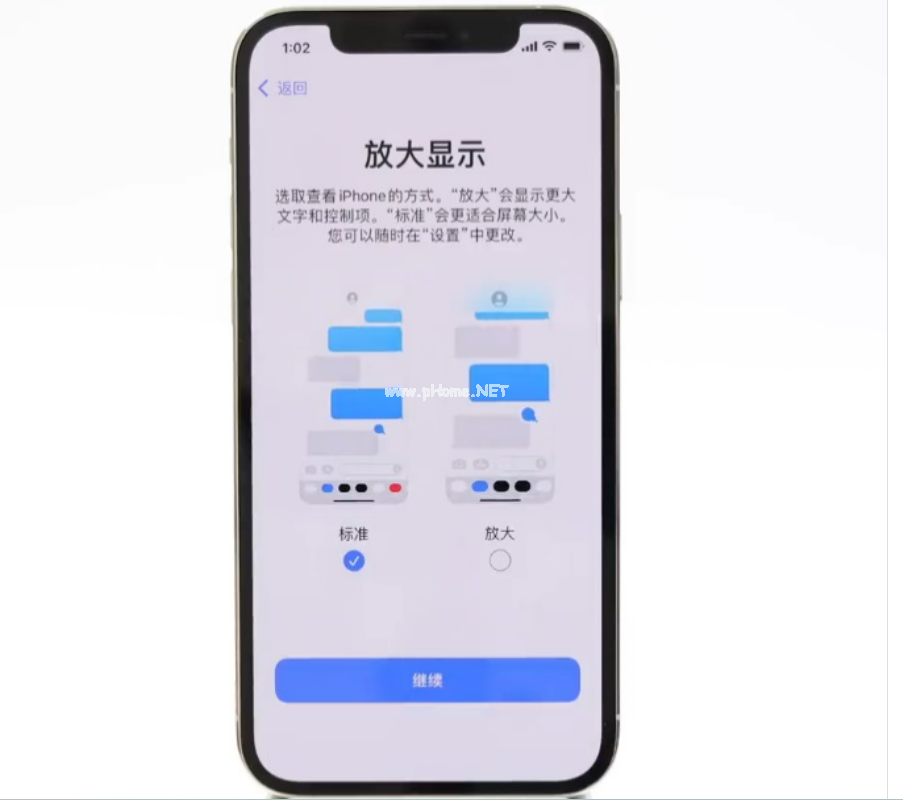 12、這里 iPhone 14激活就快完成了,下面就是系統(tǒng)外觀設(shè)置選擇啟用淺色模式還是深色模式,之后點(diǎn)擊「繼續(xù)」,再設(shè)置一下放大顯示,就可以進(jìn)入手機(jī)桌面了,蘋果14系列手機(jī)激活就完成了。