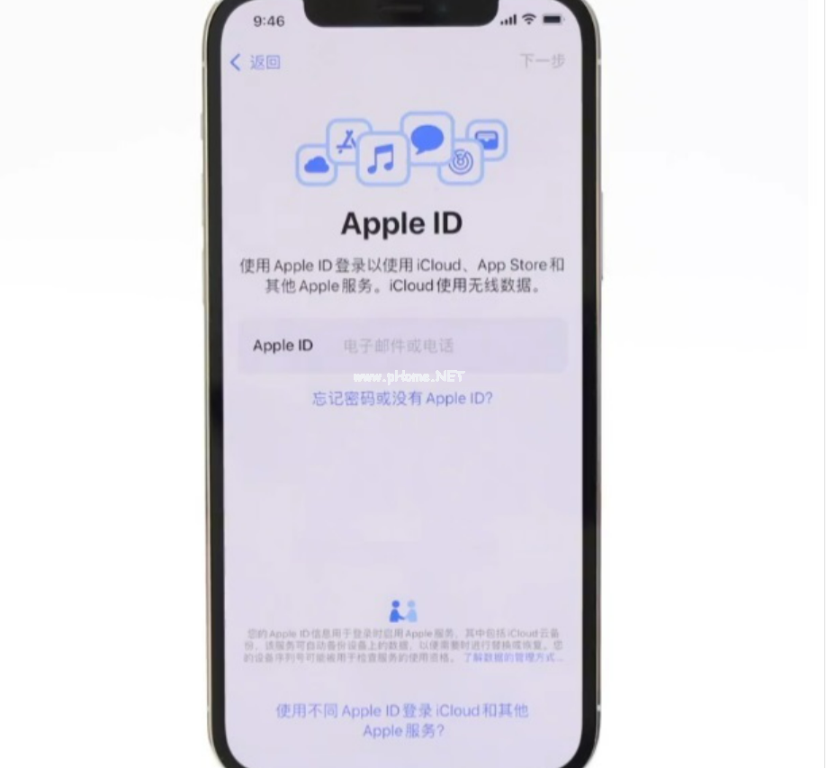 8、不管是選擇哪種操作,后面都會(huì)要求登陸蘋果的 Apple ID 賬號(hào)密碼,因?yàn)榻窈笤谔O果應(yīng)用商店下載 APP,都需要用到。如果你之前已經(jīng)注冊(cè)過Apple ID賬戶,直接使用賬號(hào)密碼進(jìn)行登陸即可。