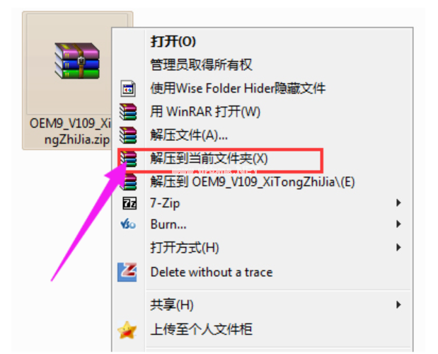 3、點(diǎn)擊打開解壓后的文件包,鼠標(biāo)右鍵選擇以管理員身份運(yùn)行OEM9(小馬win7激活工具)。