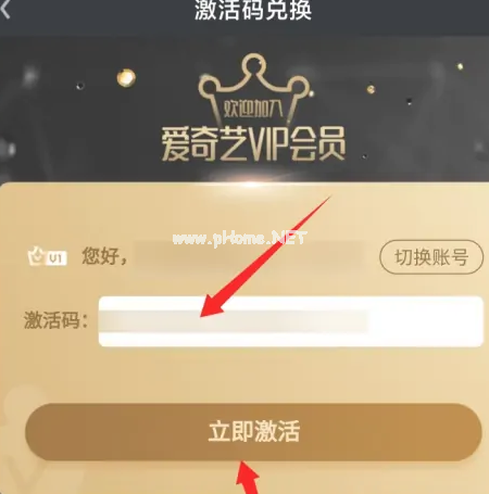 2.輸入愛奇藝會員激活碼即可激活成功。
