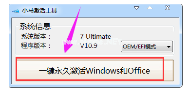 3、出現(xiàn)小馬激活工具窗口之后,鼠標點擊一鍵永久激活Windows和office。