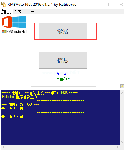 KMSAuto Net Win7激活工具能夠一鍵激活win7各個(gè)版本系統(tǒng),另外也可激活win10、win8等Windows系統(tǒng)及office軟件等等,內(nèi)置專業(yè)模式與普通模式,在主界面點(diǎn)擊激活即可執(zhí)行自動(dòng)激活工作。