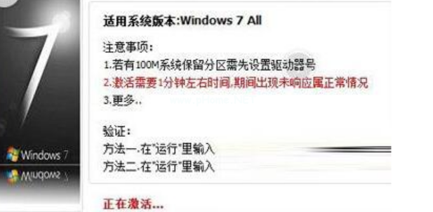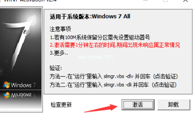 2、進(jìn)入到win7激活工具軟件主界面,在界面中有注意事項(xiàng)和驗(yàn)證等信息,直接點(diǎn)擊激活選項(xiàng),開始激活電腦。