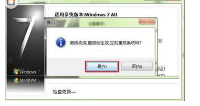 4、等待激活完成后,軟件會(huì)彈出提示框,提示你激活完成,需要重啟電腦后才能生效。