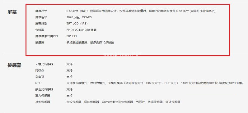 4、看 一下屏幕尺寸參數(shù),屏幕尺寸6.53英寸,分辨率FHD+2244x1080 像素。
