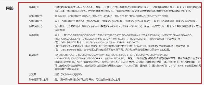 1、可以看到華為mate20雙卡雙待,屏幕6.53英寸,攝像頭前置單攝2400萬像素,后置徠卡三攝 1200萬像素,CPU型號麒麟980,運行內(nèi)存6G。