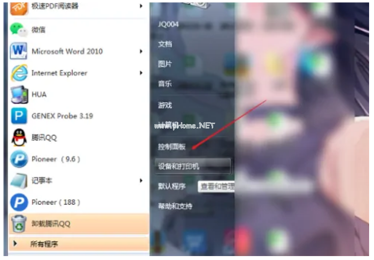 4、這里點擊“開始”按鈕,選擇“控制面板”。