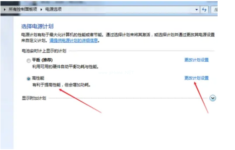 6、勾選“高性能”,然后再點擊“更改計劃設(shè)置”。
