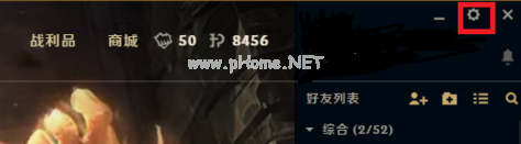 1、首先需要將“英雄聯(lián)盟”更新成為最新版的客戶端,再打開”英雄聯(lián)盟“客戶端,點擊右上角設置圖標界面進入。
