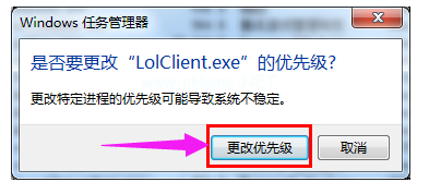 3、在彈出的窗口界面中點擊“更改優(yōu)先級”按鈕即可。