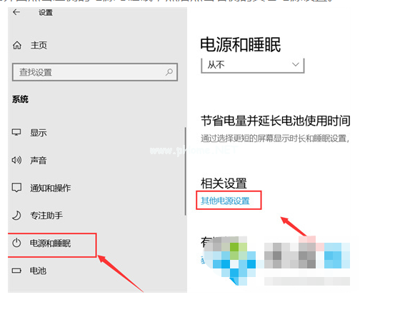 9、鼠標點擊左側(cè)的電源與睡眠,點擊右邊的其它電源設置。