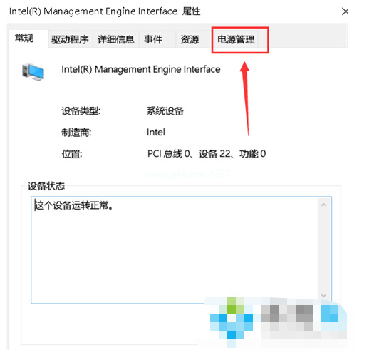 5、此時將會彈出屬性面板,鼠標點擊電源管理。