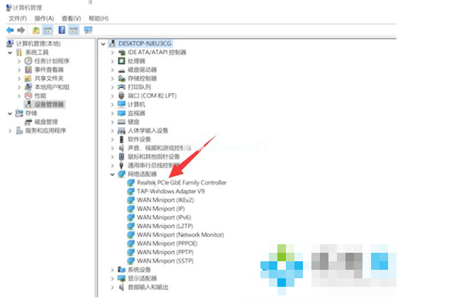 2、接著展開網(wǎng)絡適配器,雙擊網(wǎng)卡驅(qū)動;