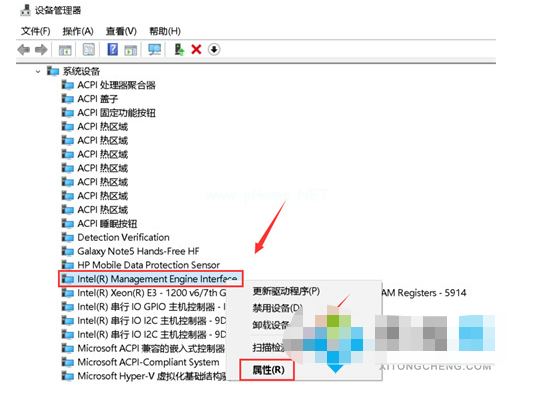 4、鼠標右鍵單擊Intel(R) Management Engine Interface選擇屬性選項打開。