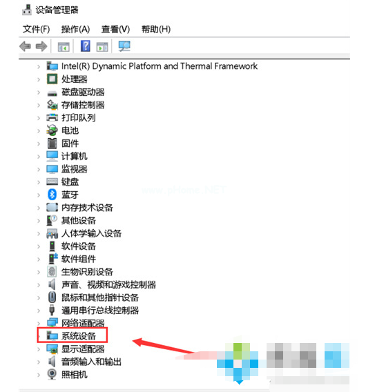 3、然后在設備管理器里展開系統(tǒng)設備。
