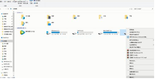 1.在U盤盤符上點擊鼠標右鍵,選擇“屬性”。