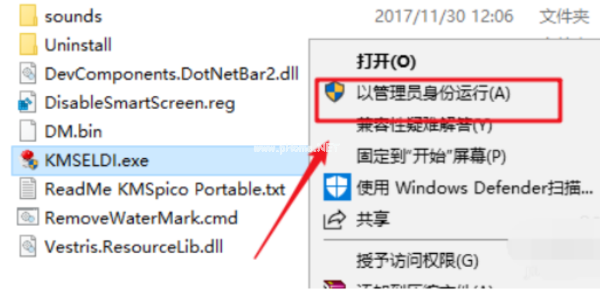 3、右擊kmseldi.exe選擇“以管理員身份運(yùn)行”。