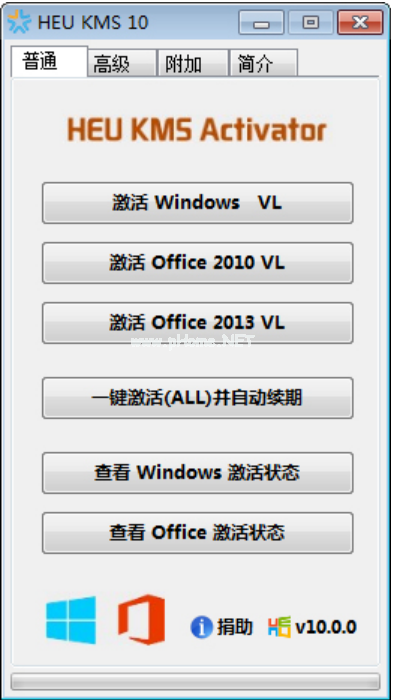 HEU KMS Activator,又稱之為迷你版kms,它是目前網(wǎng)絡(luò)上最專業(yè)、最實(shí)用的一款Windows+Office離線激活工具。軟件功能強(qiáng)大,操作也很簡單,其為單一可執(zhí)行的方式,使用完畢后對系統(tǒng)無任何殘留,可以直接刪除,幾乎能不聯(lián)網(wǎng)激活全部版本的Windows和Office,并且支持自動(dòng)續(xù)期。目前heu kms 10是最新版本,可以成功激活Win7、Win8、Win8.1、Server2008、Office 201O/2013、win10的各個(gè)版本,并增加了對Windows 10 RTM版的支持,修復(fù)了自動(dòng)續(xù)期失敗的問題。
