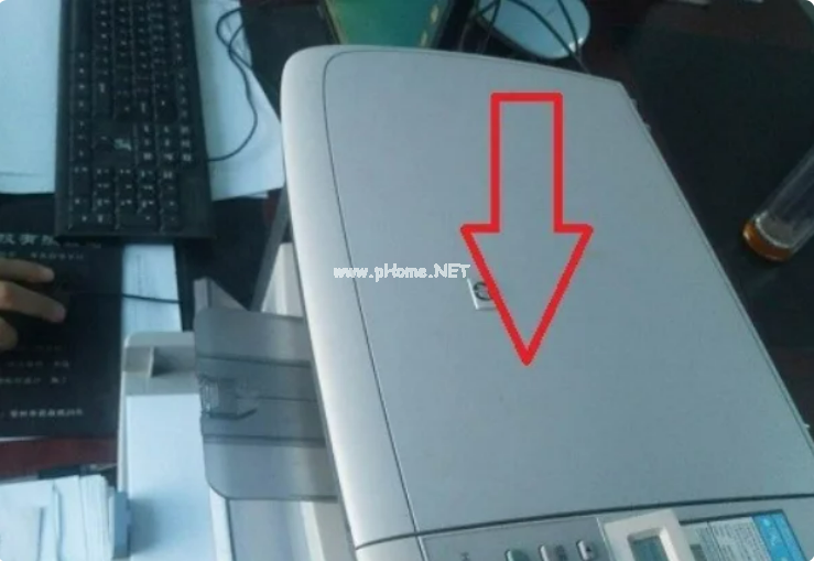 2、然后將需要掃描的文件放置在打印機(jī)面板上,蓋子要蓋好。