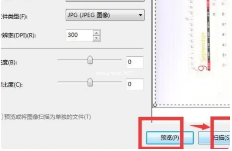 6、可以先點(diǎn)擊預(yù)覽,確認(rèn)文件和擺放位置無(wú)誤之后再點(diǎn)擊掃描。