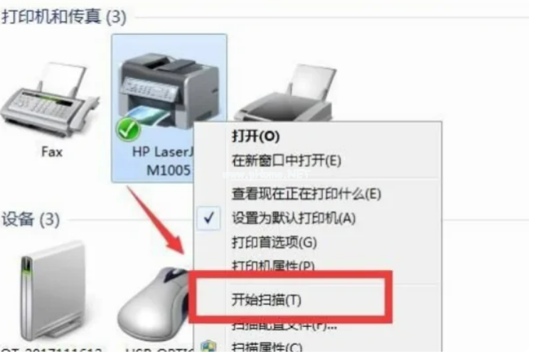 5、單擊右鍵選擇“開(kāi)始掃描”。