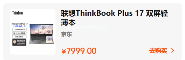 8.聯(lián)想ThinkBook Plus 17 雙屏輕薄本#7999#