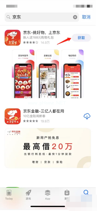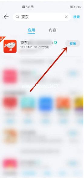 2、在搜索框中輸入【京東】點搜索,再點擊【安裝】。