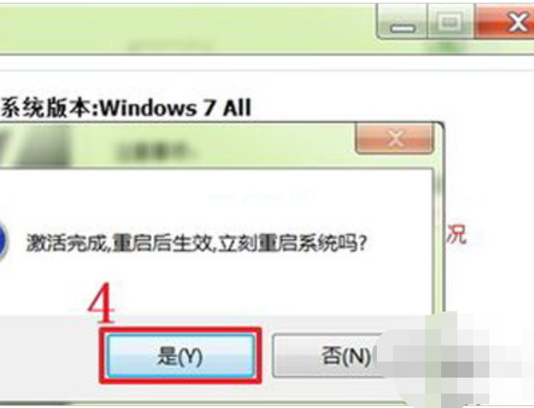 4、大約過一分鐘,就能看到下圖所示的提示,點(diǎn)擊“是”按鈕,重新啟動(dòng)系統(tǒng)即可激活。