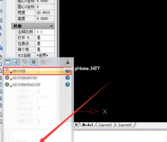 6、雙擊此文件進(jìn)入圖紙頁面,接著在左下角的命令行中輸入“recover”命令,接著按鍵盤上的按回車鍵進(jìn)行確認(rèn):